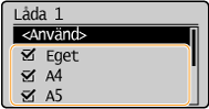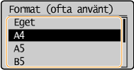 Välj ett pappersformat som används mycket och tryck sedan på  för att markera det.
