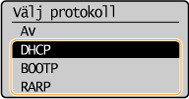 Välj <DHCP>, <BOOTP> eller <RARP> och tryck sedan på