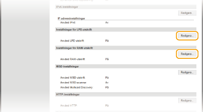 Klicka på [Redigera] i [Inställningar för LPD-utskrift] eller [Inställningar för RAW-utskrift].