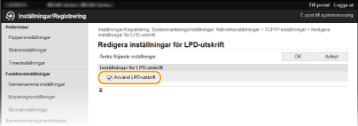 Markera kryssrutan för att skriva ut via LPD. När LPD-utskrift inte används avmarkerar du kryssrutan. [Använd RAW-utskrift]