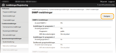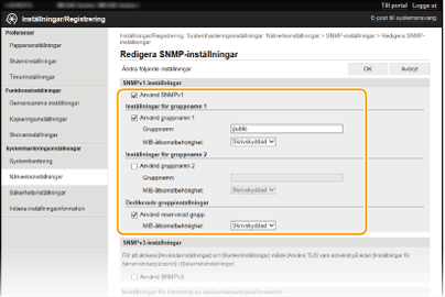 Om du inte behöver ändra inställningarna för SNMPv1 går du till nästa steg.