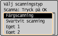 Skanna enklare från enhetenOm du ofta använder samma inställningar, till exempel skanna i färg eller i svartvitt, eller en förutbestämd dator där skannade dokument ska sparas på, är det krångligt att behöva ange dessa inställningar varje gång du ska skanna. Registrera dessa inställningar i en [Scan -> PC]-knapp så att du kan skanna genom att trycka på en knapp. Skanna med tangenten [Scan -> PC]