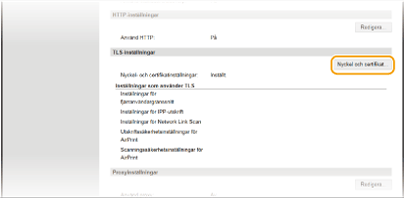Använda kontrollpanelenDu kan även aktivera eller inaktivera TLS-krypterad kommunikation från <Meny>. Använd TLS
