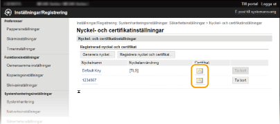Klicka på [Nyckel- och certifikatinställningar] om du vill verifiera ett nyckelpar och på [CA-certifikatinställningar] om du vill verifiera ett CA-certifikat.