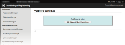 Kontrollera certifikatinformationen och klicka på [Verifiera certifikat].