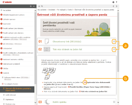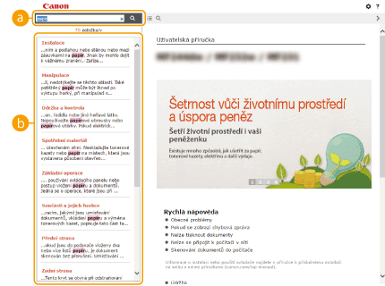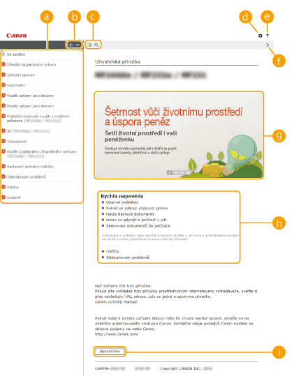 Kliknutím zobrazíte informace, jak používat Uživatelská příručka, jak v ní provádět hledání a jiné informace.