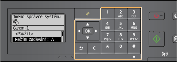 Typ zadávaného textu lze rovněž zvolit výběrem možnosti <Režim zadávání> a stisknutím tlačítka