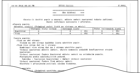 Hlášení nebo seznamy mohou být vytištěny na papír velikosti A4 nebo Letter.