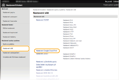 <Povolit Google Cloud Print> a stiskněte tlačítko