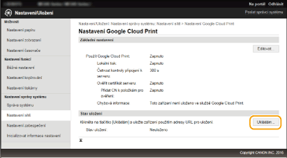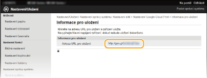 Klikněte na odkaz adresy URL zobrazené v poli [Adresa URL pro uložení].