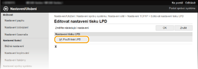 Políčko zaškrtněte, chcete-li tisknout pomocí protokolu LPD. Pokud tisk LPD nepoužíváte, zaškrtnutí políčka zrušte. [Použít tisk RAW]