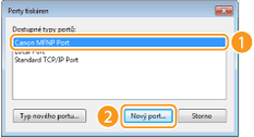 Ze seznamu [Dostupné typy portů] vyberte položku [Port Canon MFNP] a klikněte na tlačítko [Nový port].
