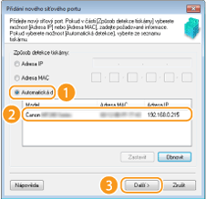 Klikněte na možnost [Automatická detekce], po zjištění zařízení ho vyberte a klikněte na tlačítko [Další].