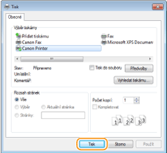 V nabídce aplikace klepněte nebo klikněte na možnost [Tisk] ovladač tiskárny pro toto zařízení [Tisk].Pokud tisknete tímto způsobem, je k dispozici pouze omezené množství nastavení tisku.