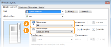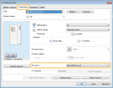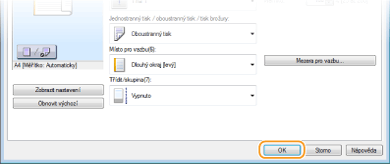 Uživatelské rozhraní s možnostmi kliknutíUmožňuje snadné a intuitivní nastavení rozložení stránky, umístění vazby atd. prostřednictvím náhledu obrazu. Další informace získáte kliknutím na možnost [Nápověda] na obrazovce ovladače tiskárny.