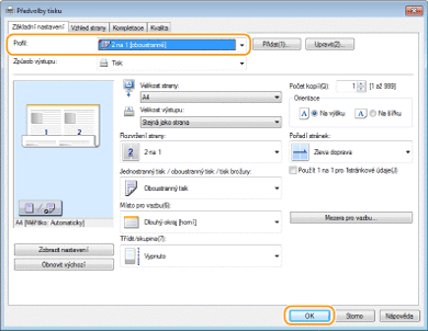 Vyberte profil, který vyhovuje vašim potřebám, a klikněte na tlačítko [OK].