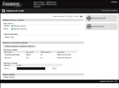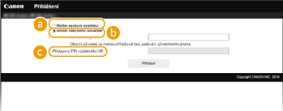Prostřednictvím Vzdáleného uživatelského rozhraní můžete provádět všechny operace a nastavení. Zadejte příslušný kód PIN do pole [PIN správce systému] (