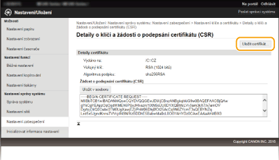 Klikněte na tlačítko [Procházet], zadejte soubor, pro který chcete žádat o podepsání certifikátu (CSR), a klikněte na tlačítko [Ukládám].