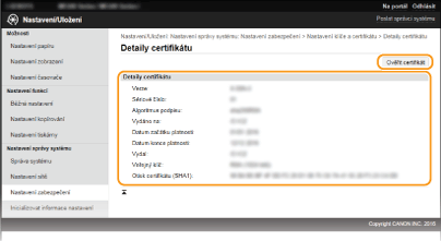 Zkontrolujte podrobnosti certifikátu a klikněte na [Ověřit certifikát].