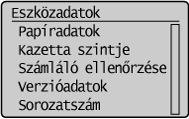 A készülék állapotát, többek között a papírméretet és a hátralévő festékmennyiséget jeleníti meg.
