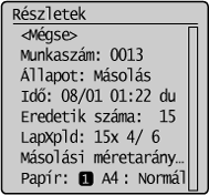 A kijelölt elem aktuális állapotát jeleníti meg. Az alábbiakban a <Másolás állapota> képernyő látható példaként.