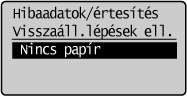 Amikor hiba lép fel, bizonyos esetekben a hiba elhárítására vonatkozó útmutatás jelenik meg a kijelzőn. A probléma megoldásához kövesse a kijelzőn látható utasításokat. Az alábbi ábrán például a papírelakadáskor megjelenő képernyő látható (