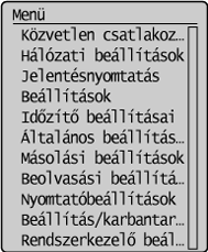 gomb megnyomásakor megjelenik a <Menü> képernyő. Erről a képernyőről kiindulva adhatja meg a készülék általános beállításait (pl. <Beállítások> vagy <Időzítő beállításai>), valamint az egyes funkciók, például másolás és beolvasás számos beállítását.