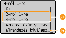 A <2-ről 1-re>/<4-ről 1-re> használatával a másolási arány automatikusan csökkenthető (a másolási arány megjelenik a képernyőn). A
