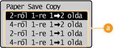 A kétoldalas <Paper Save Copy> beállítás bizonyos papírméreteknél és -típusoknál lehet, hogy nem érhető el. Papír