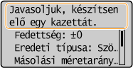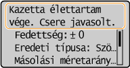 Amikor majdnem kiürült a festékkazetta, a készülék egy üzenetet jelenít meg. Ne feledje, hogy ha ekkor minden intézkedés nélkül folytatja a nyomtatást, romlik a nyomtatás minősége. A kijelzőn láthatja, hogy mennyi festék van még.
