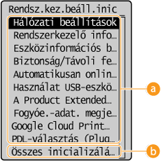 Ha a <Rendszerkezelő beállítások> beállítás van kiválasztva
