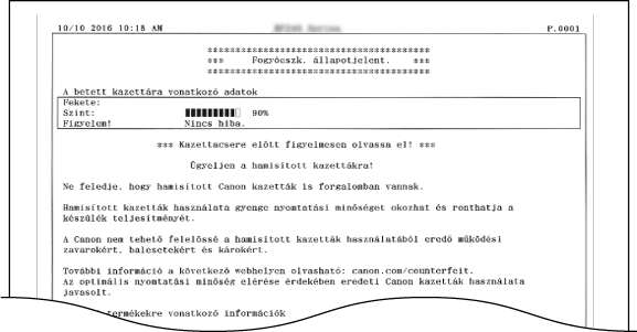 Felhasználói adatlista nyomtatásával ellenőrizheti a beállítások listáját, valamint a készüléken regisztrált tartalmat.