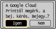 Az eszköz bejegyzésére mobileszközről és a Google Chrome böngészőből is végrehajtható*. A bejegyzés befejeződése előtt a következő megerősítő képernyő jelenik meg a készülék kijelzőjén. Válassza ki az <Igen> lehetőséget a bejegyzés elvégzéséhez.