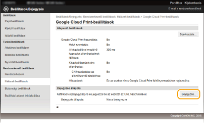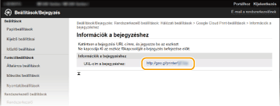 * A bejegyzési műveletekkel kapcsolatos tudnivalókat a mobileszköz használati úrmutatójában vagy a Google Cloud Print webhelyén olvashatja el.