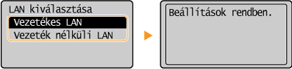 Válassza a <Vezetékes LAN> vagy <Vezeték nélküli LAN> lehetőséget, majd nyomja meg az