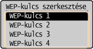 Válassza ki a szerkeszteni kívánt WEP-kulcsot (1–4), és nyomja meg az