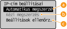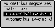 Válassza a <DHCP>, <BOOTP> vagy <RARP> lehetőséget, majd nyomja meg az