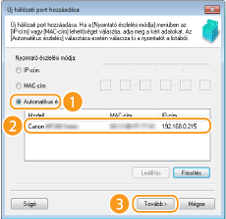 Kattintson az [Automatikus észlelés] pontra, válassza ki az észlelt készüléket, majd kattintson a [Tovább] gombra.