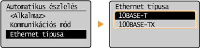 válassza a <Félduplex> vagy <Teljes duplex> lehetőséget.![]() <Félduplex>Felváltva küldi és fogadja a kommunikációs adatokat. Akkor válassza, ha a készülék félduplex módon kommunikáló hálózati eszközhöz van csatlakoztatva.