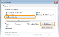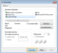 Érintse meg a [Nyomtatás] lehetőséget az alkalmazás menüjében, vagy kattintson rá a készülék nyomtató-illesztőprogramja [Nyomtatás].Ha ezzel a módszerrel nyomtat, csak korlátozott számú nyomtatási beállítás érhető el.