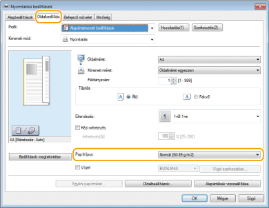 Kattintható felhasználói felületA lapelrendezés, a kötési pozíció stb. könnyen, intuitívan beállítható az előnézeti képen. A további tudnivalókért kattintson a nyomtató-illesztőprogram [Súgó] menüpontjára.