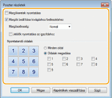 Kétoldalas nyomtatás választása esetén nem választhatók poszterméret-beállítások. Válassza ki az [Egyoldalas nyomtatás] lehetőséget az [Egyoldalas/kétoldalas/könyvnyomtatás] beállításban, majd válasszon egy poszterméretet.