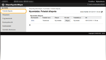 Ha rendszerkezelői üzemmódban van bejelentkezve, akkor minden jelenleg nyomtatás alatt álló és nyomtatásra váró dokumentum megjelenik a listában.