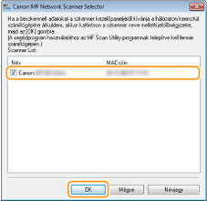 Győződjön meg arról, hogy a készülék és az Ön számítógépe csatlakozik egymáshoz és minden szoftver telepítve van. Az ellenőrzésről lásd: „MF illesztőprogram telepítési útmutatója”. Vezeték nélküli vagy vezetékes helyi hálózati csatlakozáshoz ezt a készüléket be kell jegyeznie az MF hálózati lapolvasó kiválasztása alkalmazásban. A bejegyzéshez az alábbiak szerint járjon el. Erre az eljárásra nincs szükség, ha a készülék és az Ön számítógépe USB-kapcsolaton keresztül csatlakozik egymáshoz.