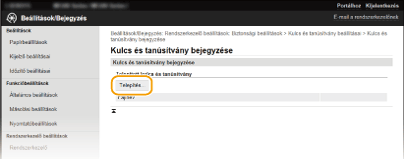 Kattintson a [Kulcs és tanúsítvány beállításai] gombra kulcspár telepítéséhez, illetve a [CA tanúsítvány beállításai] gombra hitelesítésszogláltatói tanúsítvány telepítéséhez.