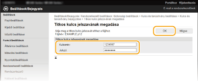Adja meg a kulcspár nevét és a jelszót, majd kattintson az [OK] gombra.