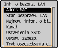 Informacje na temat elementów <Stan bezprzew. LAN> i <Najnow. infor. o błędach> można wyświetlić za pomocą przycisku