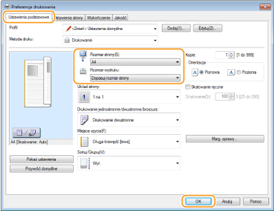 Wybierz rozmiar papieru w [Rozmiar wydruku]