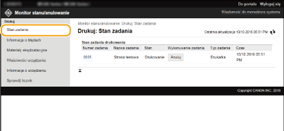 Jeżeli zalogujesz się w trybie menedżera systemu, wyświetlone zostaną wszystkie dokumenty aktualnie drukowane lub oczekujące na wydruk.