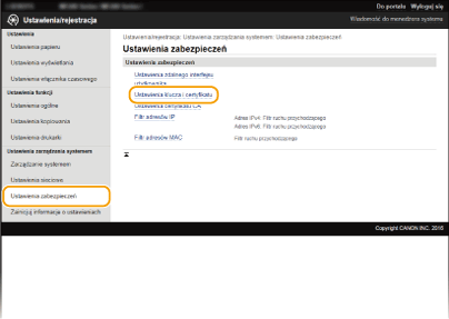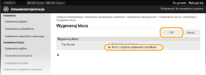 [Ustawienia klucza i certyfikatu].